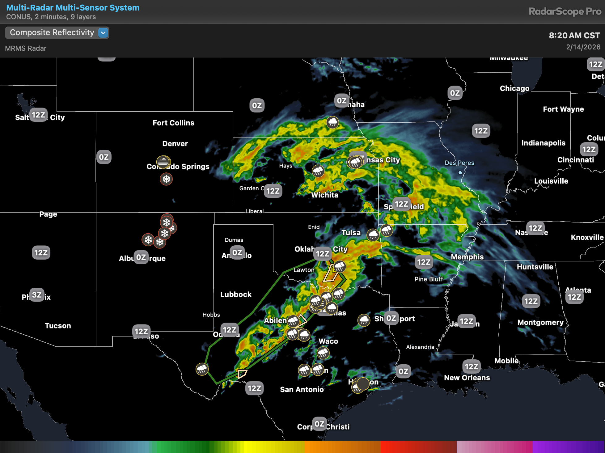 A large and powerful storm system is sweeping across the central and southern United States today through tonight, producing widespread rain and the potential for severe weather. The most impactful severe storms are expected across portions of the South, where damaging winds, isolated tornadoes, and large hail will be possible.